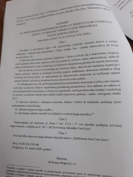 Као доказ објављујемо фотографију са дијелом наредбе која се тиче ове врсте забрана.