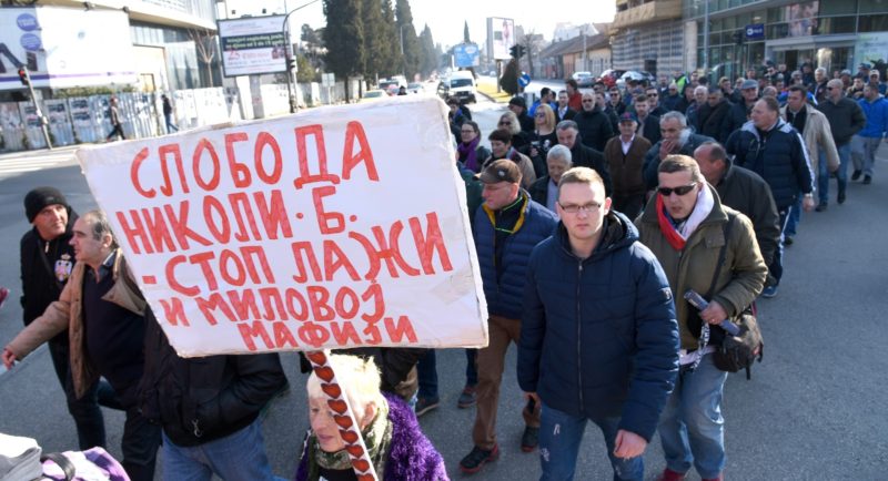 “Sloboda Nikoli B, Stop laži i Milovoj mafiji,” piše na jednom od transparenata.